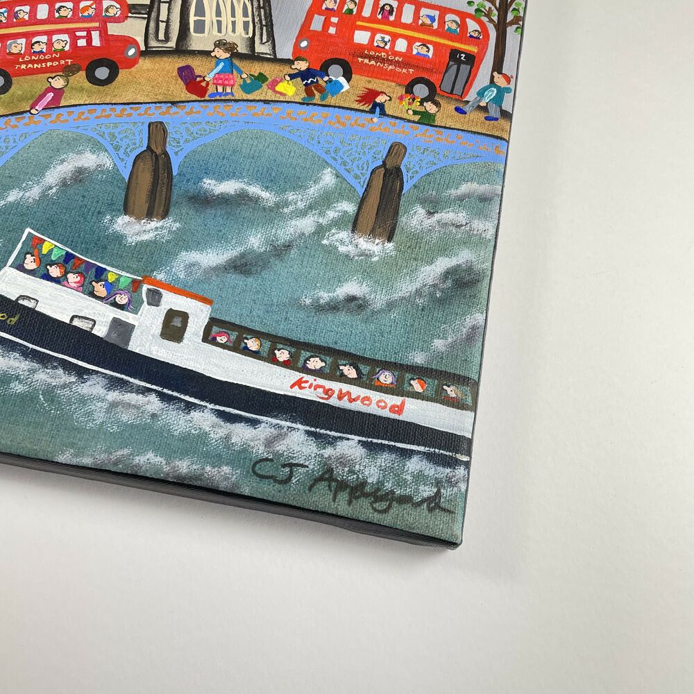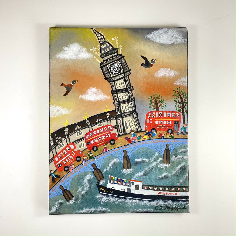 Naive acrylic on canvas of Big Ben and the Houses of Parliament.