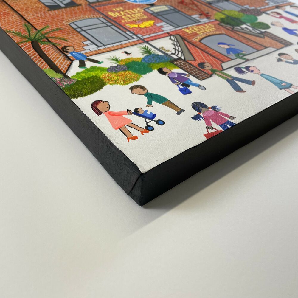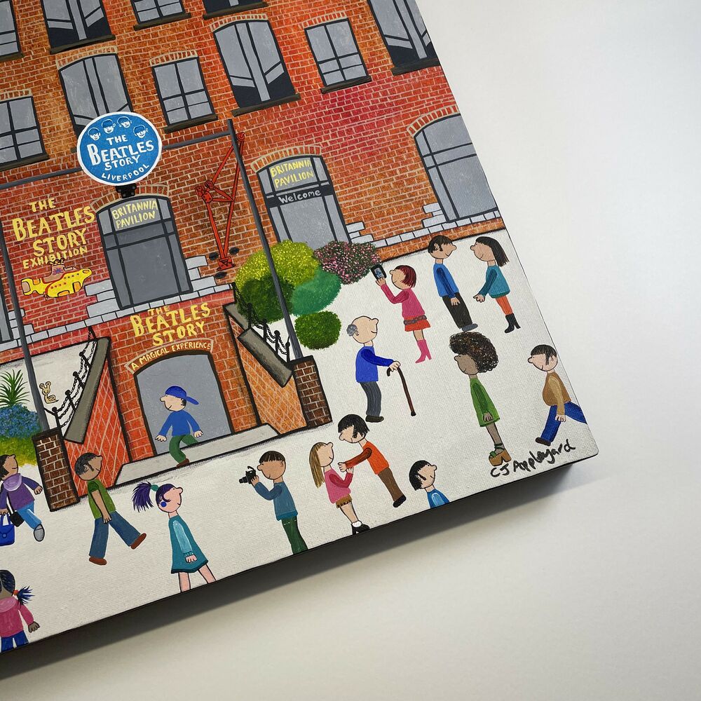Naive acrylic on canvas of the Beatles Story Exhibition in Liverpool.