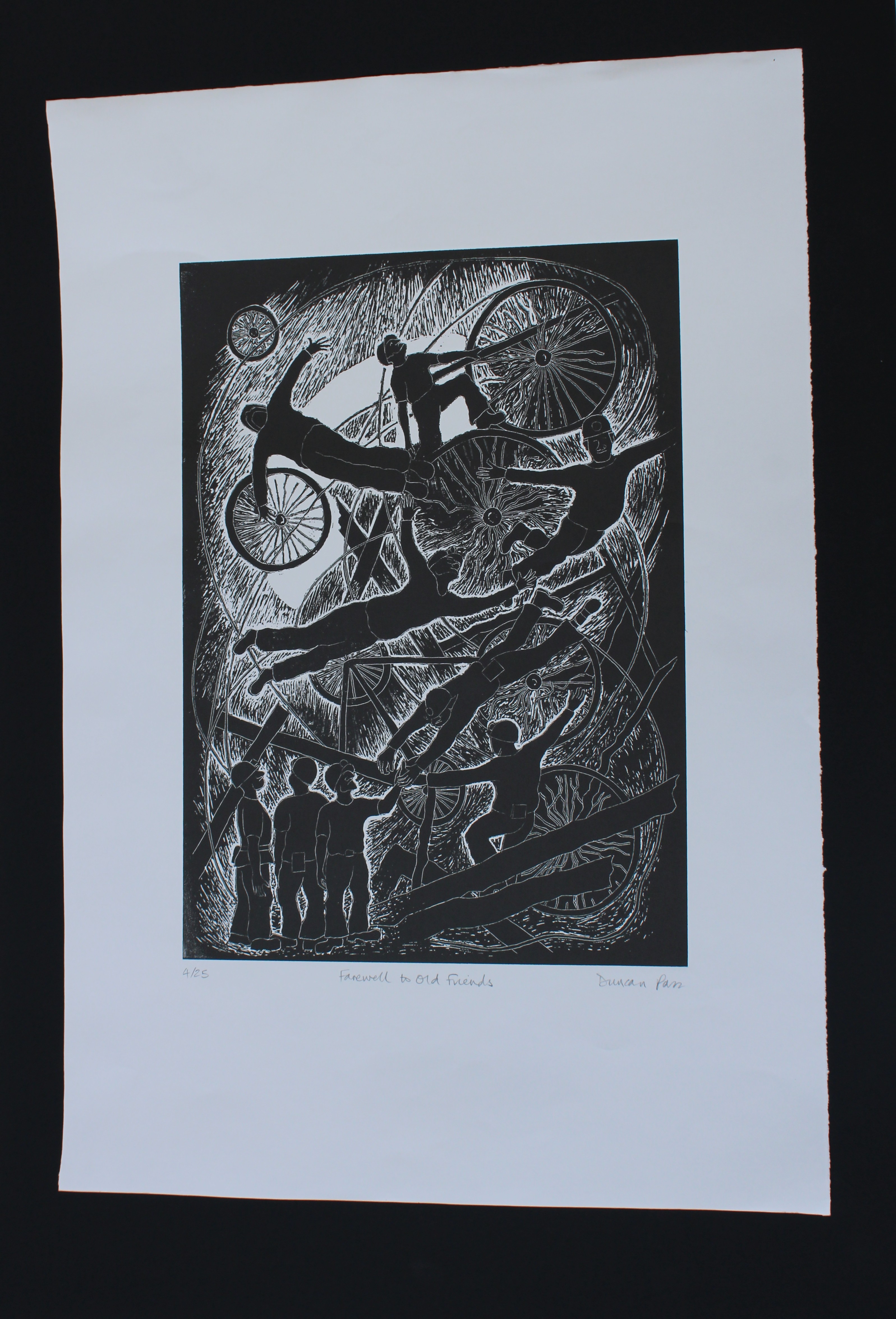 Local artist, Duncan Pass's interest in printmaking is primarily relief printing and woodcut which don't require any chemicals, meaning the process is safe and non-toxic and there's no poisonous waste to dispose of, or any need for specialist safety equipment. He employs drypoint methods as well as using chisels and drills.