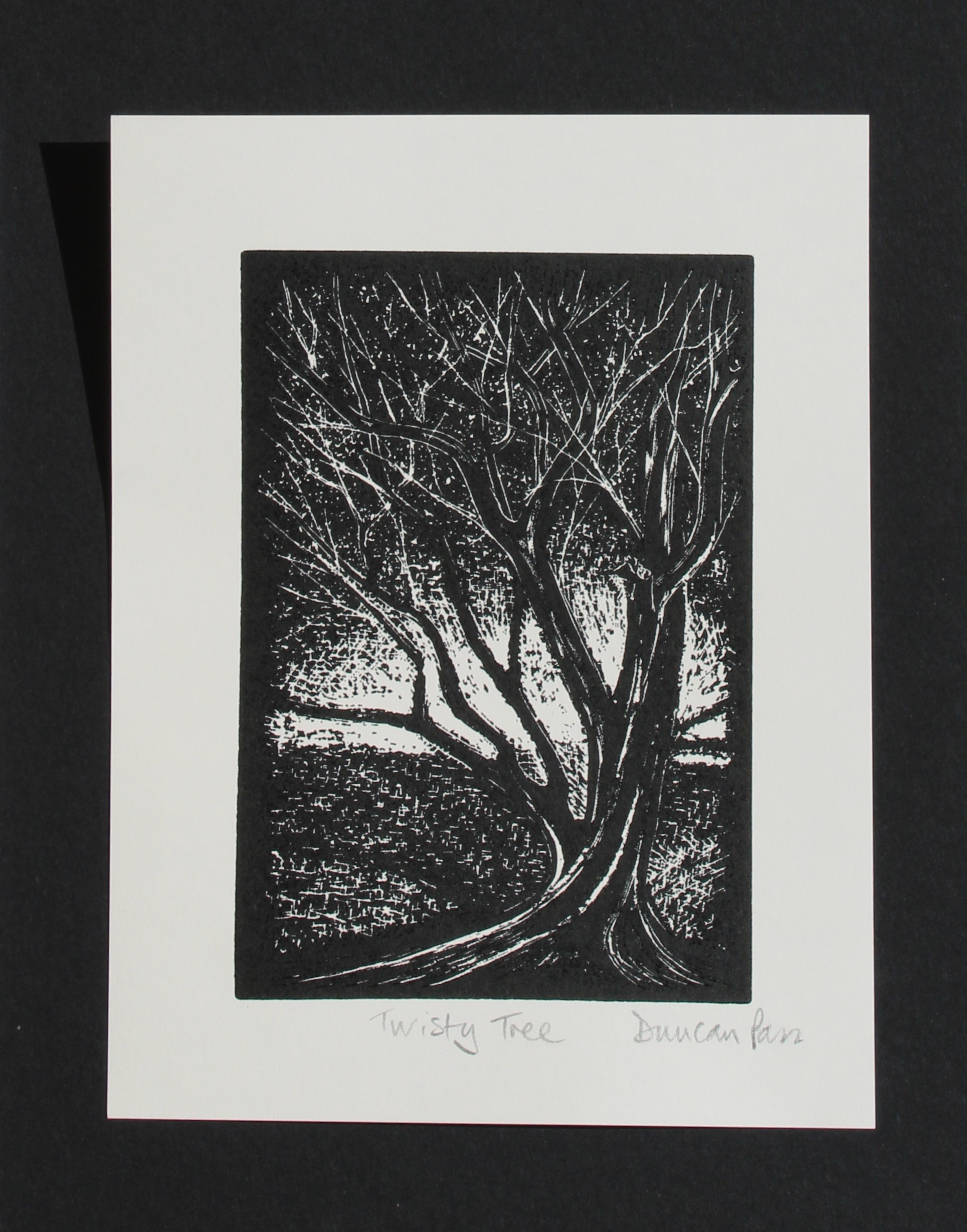 Local artist, Duncan Pass's interest in printmaking is primarily relief printing and woodcut which don't require any chemicals, meaning the process is safe and non-toxic and there's no poisonous waste to dispose of, or any need for specialist safety equipment. He employs drypoint methods as well as using chisels and drills.