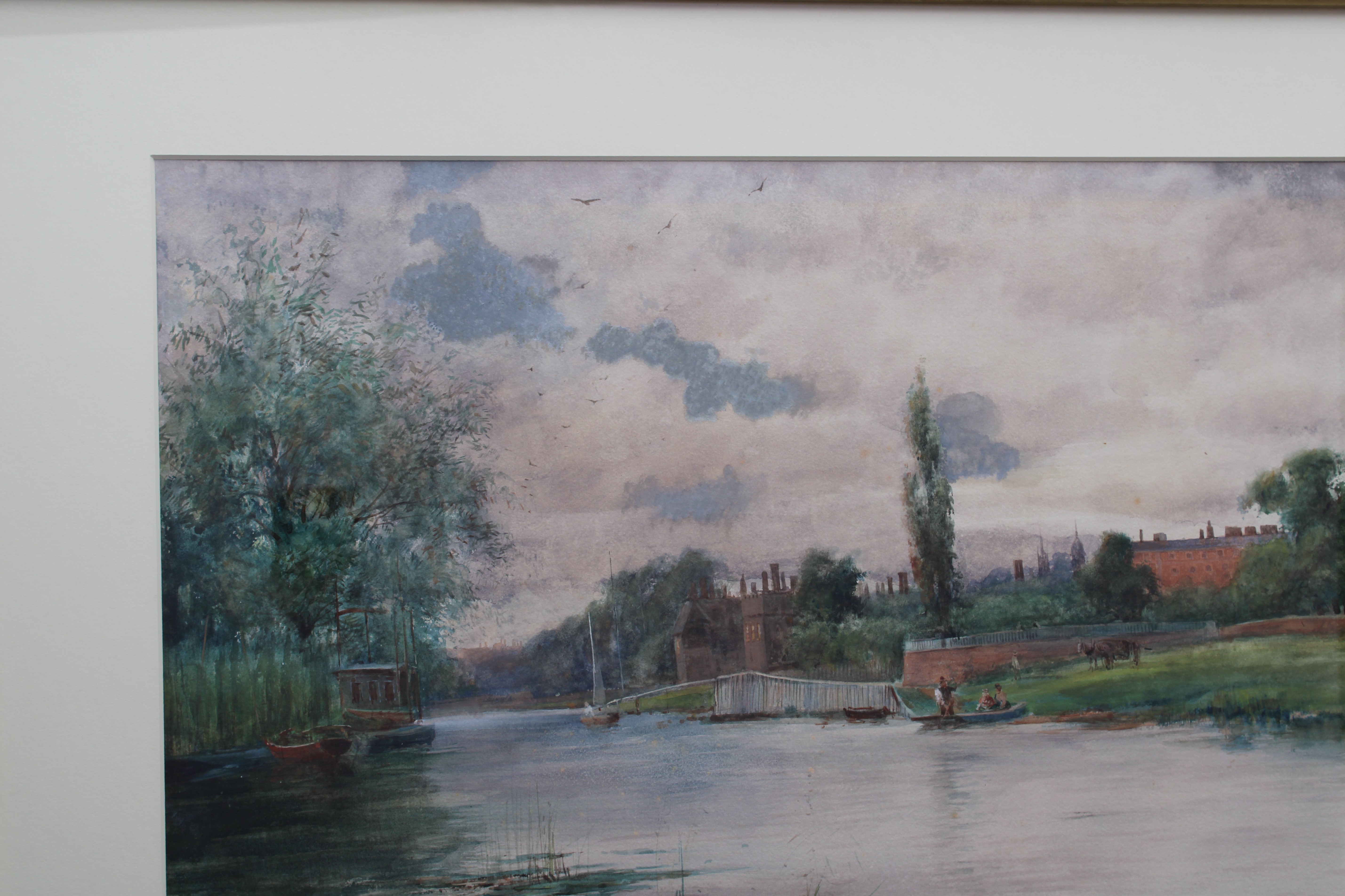 Large original watercolour of Hampton Court Palace. Circa 1900. Please note that this painting has had restoration to parts of the sky, hence the low price. Superb English made frame.