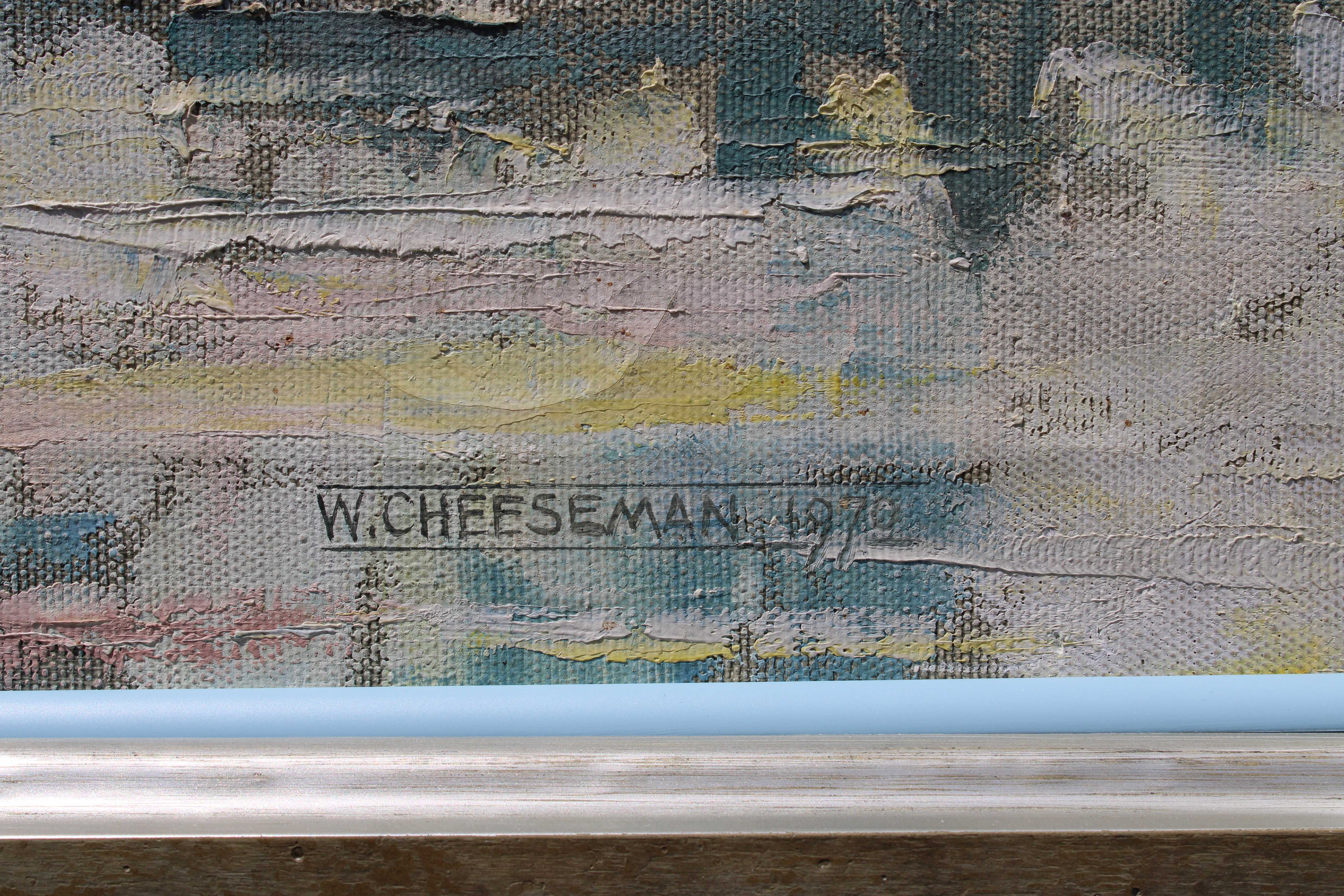 Swansea Harbour oil painting on canvas. Painted in 1979 by W Cheeseman. Quality Larson Juhl frame and slip moulding.