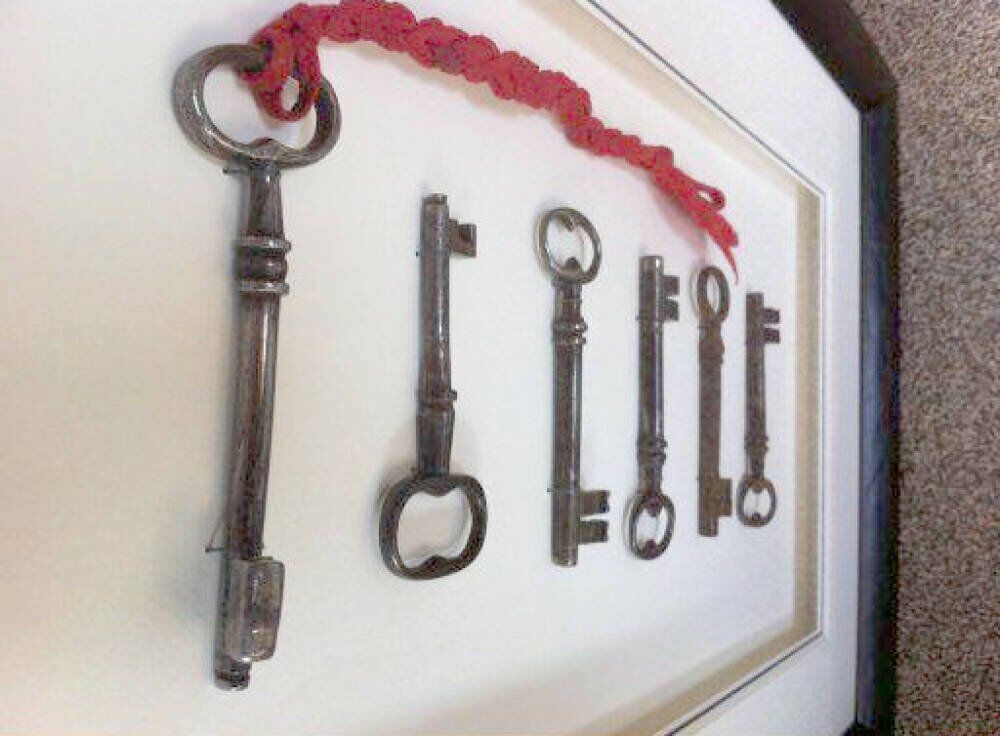 We framed this collection of antique keys - one of which was the original key to the front door of our customer's house in Switerland - in 2015.