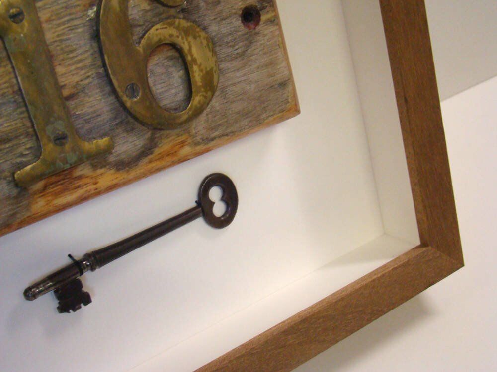 Our customer grew up at Number 16 and, having very fond memories of his childhood there, decided to bring the house number and front door key to be framed as a reminder of that time.
