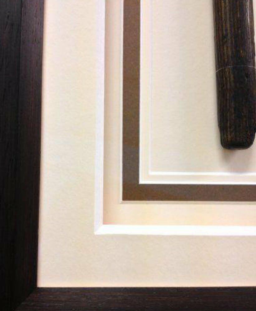 Combining several 3500 micron thick mounts, with bespoke spacers, our Framers created an eye catching display but one which didn't distract the eye from our customer's treasured item.