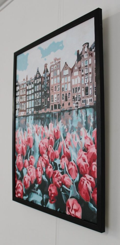 This colourful acrylic on canvas, brought to us in 2024 for framing, was painted by our customer using a DIY paint by numbers kit.