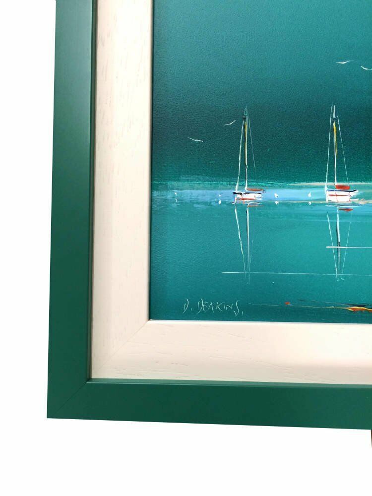 This small acrylic artwork painted in beautiful shades of turquoise was brought to us for framing in 2017.