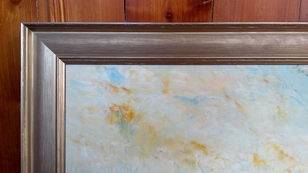 We didn't glaze the artwork - as is often the case with oils and acrylics - as the thick and textured paint is durable and can be left exposed to the air (unlike watercolors and pastels which need protecting from damage).
