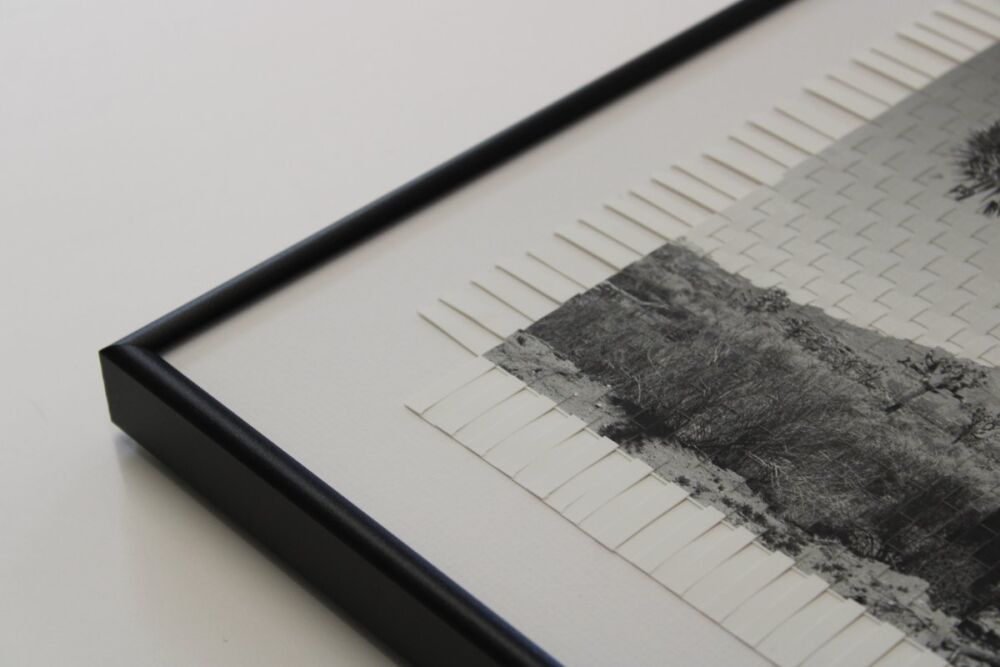 The artwork has been created by hand weaving two identical giclee prints of a black and white photograph originally taken by Bengoechea's brother, the late, internationally acclaimed, Argentinian photographer, Fernando Bengoechea, as part of his distinctive Karma Tree series of woven photographic work.