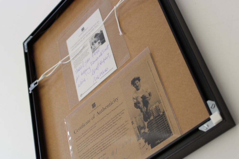 This unusual piece of art, by Marcelo Bengoechea, was brought to us in 2024 by a husband and wife who had finished renovating their house, and were ready to have several pieces of artwork they'd collected over the years framed ready to hang on their walls.