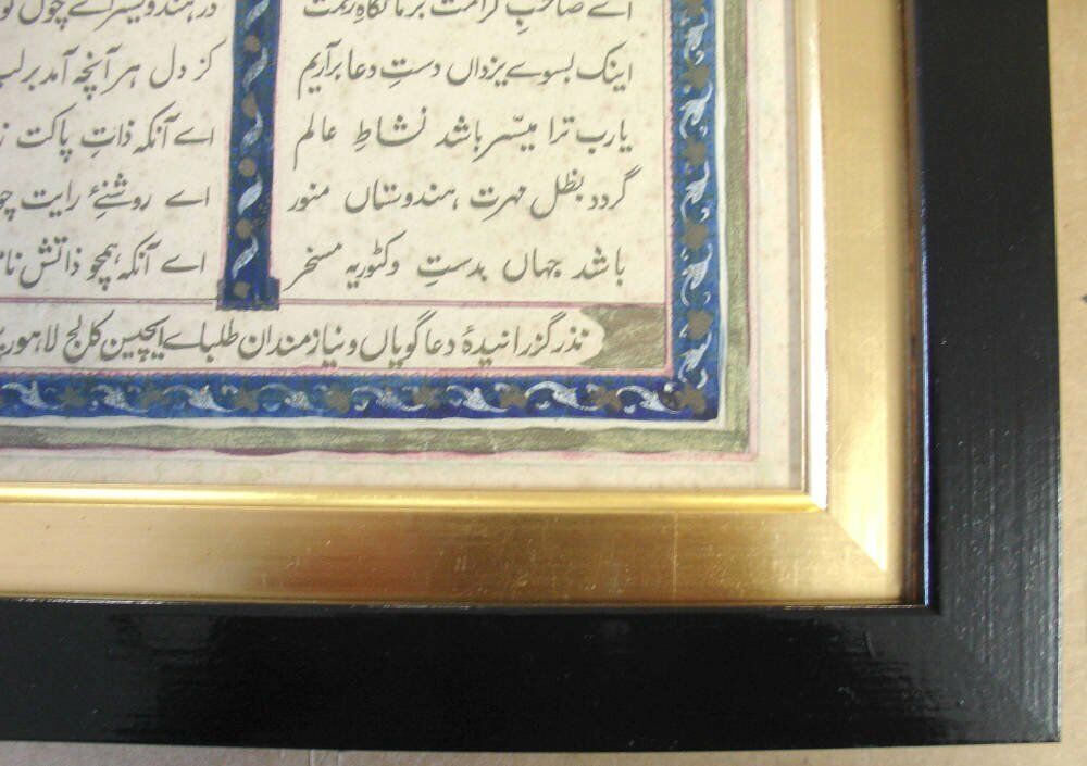 This antique Indian manuscript was brought to us for framing in 2015 on behalf of The National Trust. Belonging to George Nathaniel Curzon, Viceroy of India between 1899 and 1905, the manuscript hangs on the walls of Kedleston Hall in Derbyshire - which he inherited from his ancestors - along with the many other objects he amassed during his travels in South Asia and the Middle East.
