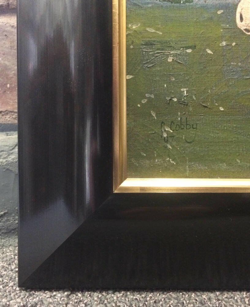 Our customer wanted a fairly substantial frame in order to make an eye catching display for this wonderful piece of vintage folk art painted in oils on canvas.