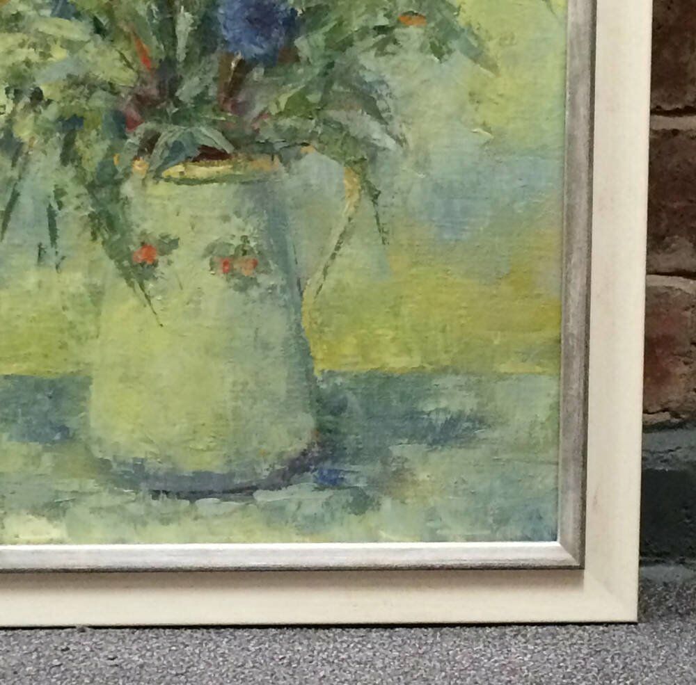 This beautiful impressionist-style picture of a vase of flowers, painted by a late family member of our customer, was brought into us for reframing in 2016.