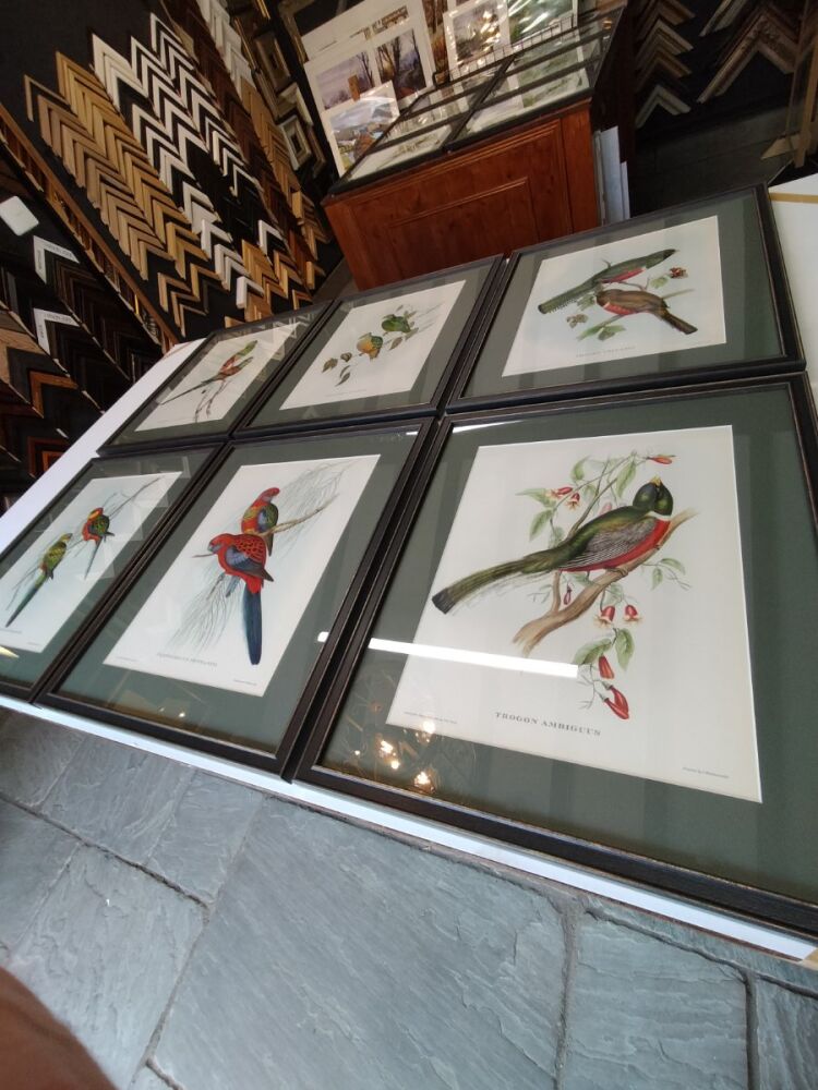These vintage ornithological prints by John Gould were brought to us for framing by Antique & Unique whose premises are in Tideswell, Derbyshire, not far from here.