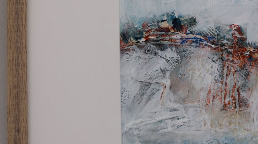 This print of one of abstract artist, Terri Hogan's seascape paintings, was brought to us to frame in 2024.