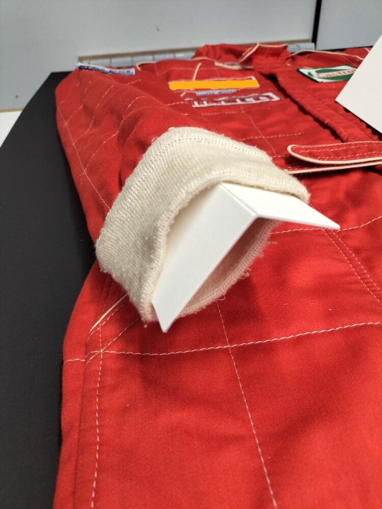 Complete with retro branding, name and blood group of the driver in embroidery, the suits also have special epaulettes which were used as ‘handles’ to lift a driver out of the car in an emergency.