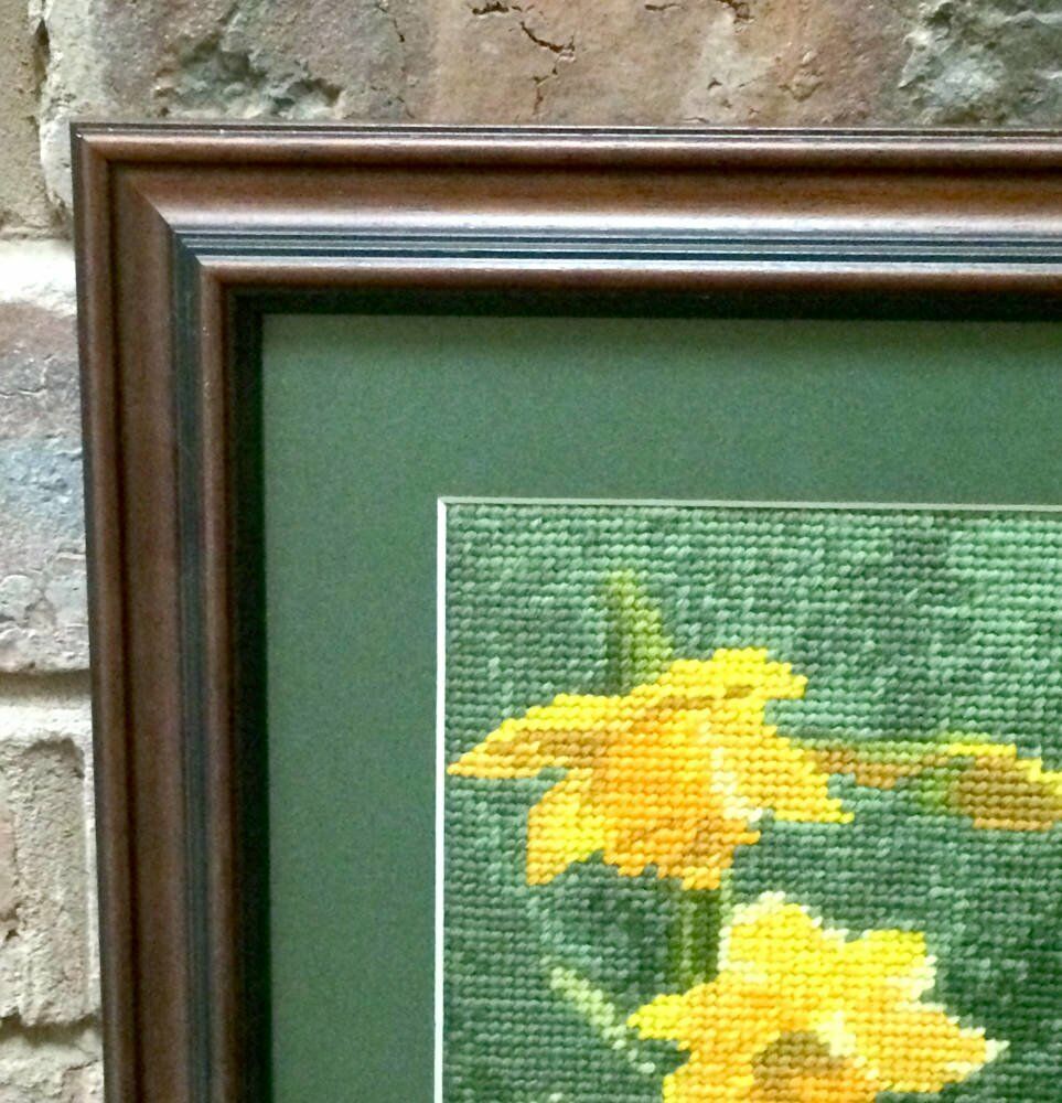 We found the perfect shade of green to mount the artwork with; it really draws the eye straight in to focus on the bright yellow daffodils.