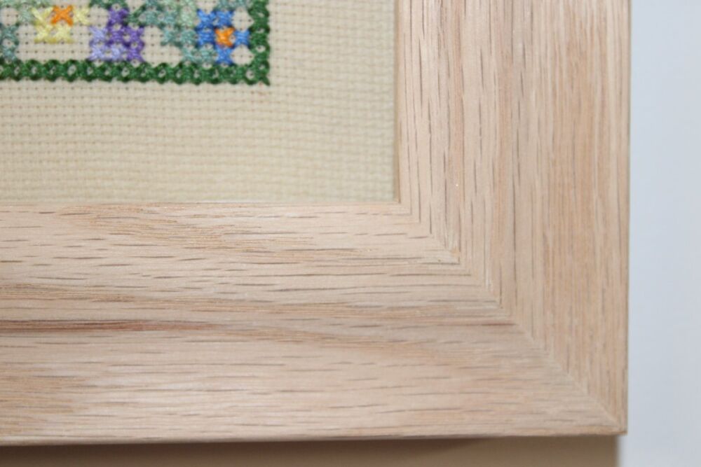 Our customers put so much time and effort into their embroideries, it’s great to see the final result once they’ve been laced and framed by our Workshop. Although more time-consuming, this fixing method ensures the cross stitch is held securely in place, and is also fully reversible meaning all your hard work will not become damaged in any way over time.