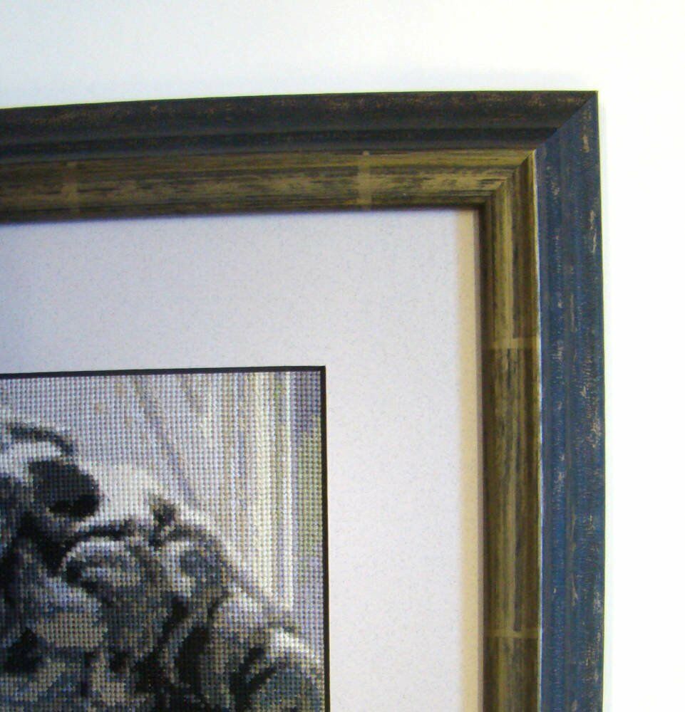 As with all of the cross stitches brought in to us for framing, we hand stretch and stitch the piece in place - working to Fine Art Trade Guild standards. This means that no adhesives are used, allowing it to be taken back out at any time in the future without any damage to the material.