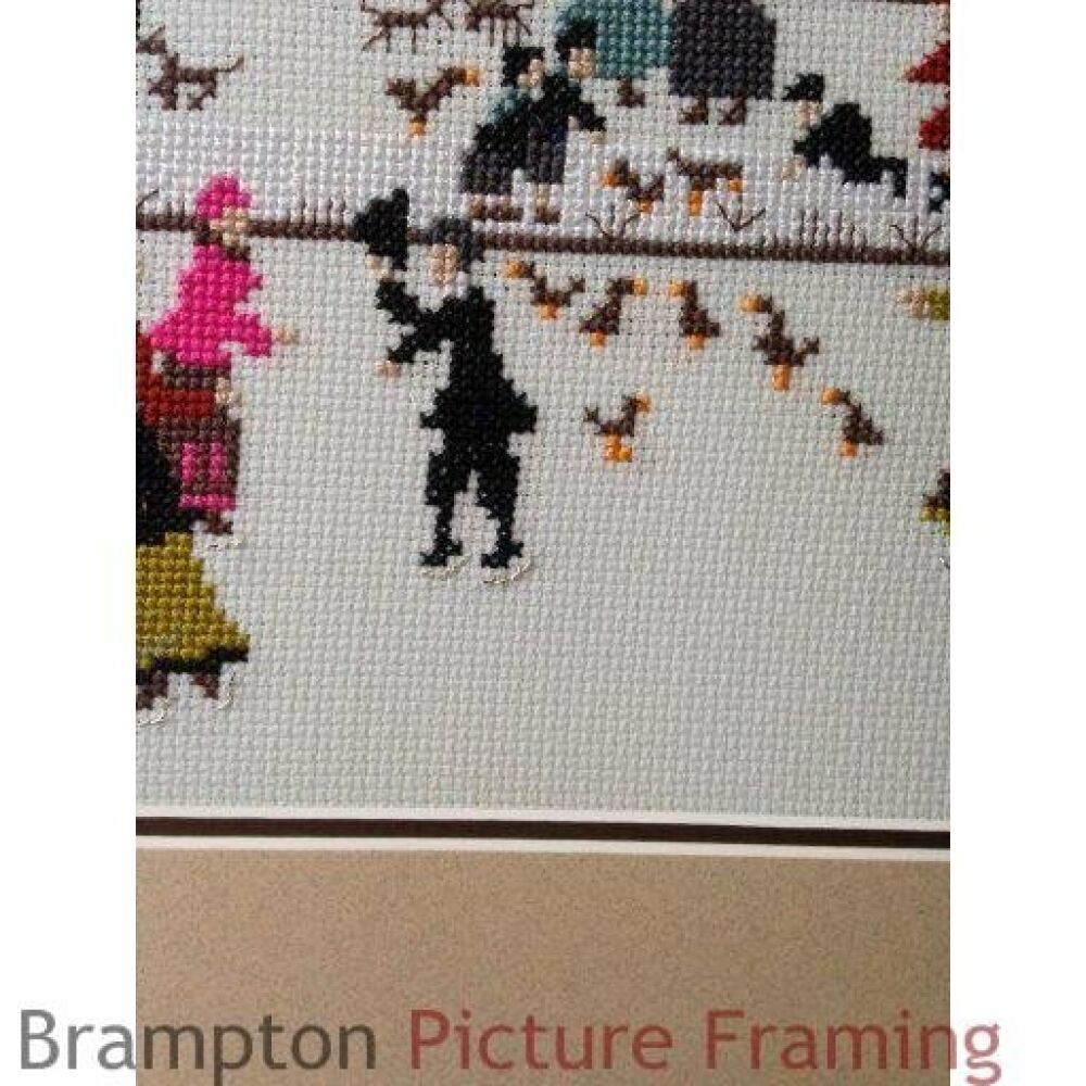We then double mounted the piece using colours which complement the tones in both the picture frame moulding as well as the picture itself. Glazing is then always added to protect the cross stitch from dust and accidental damage.