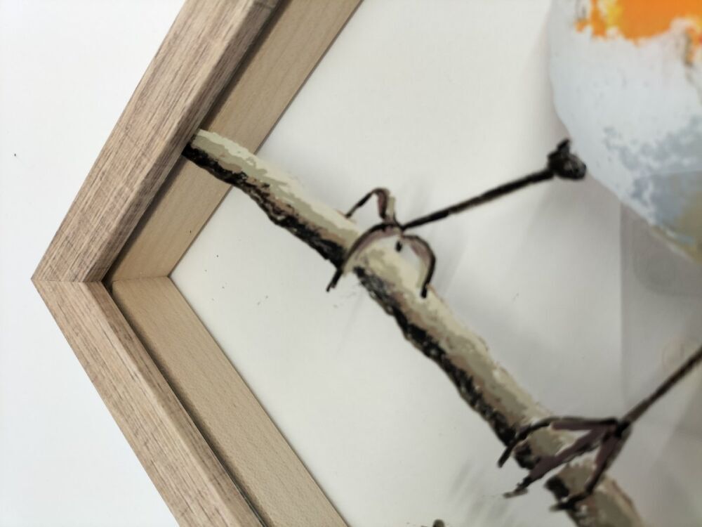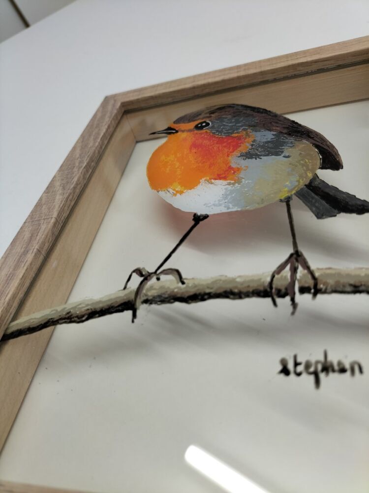 A sweet little painting of a robin on glass, brought to us for double sided framing just before Christmas 2022.