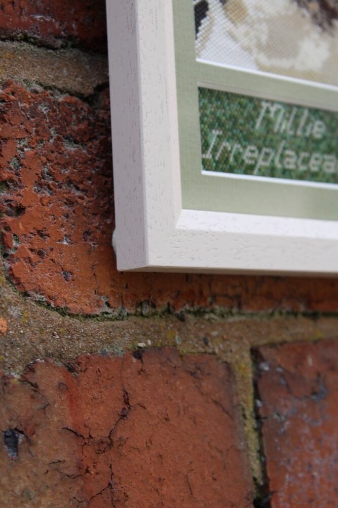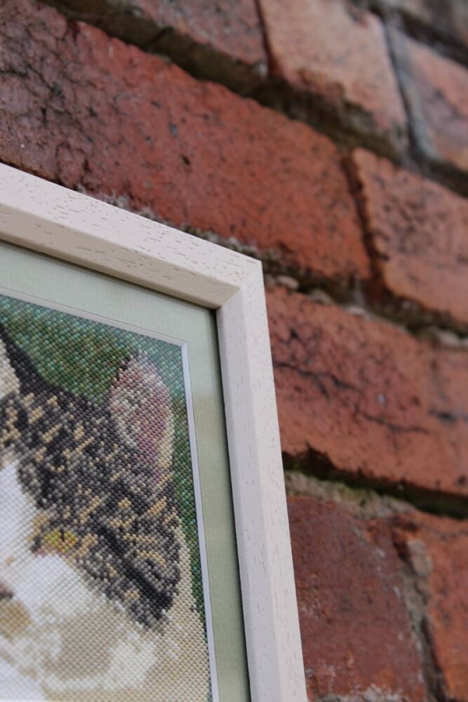 This miyuki bead picture was brought into us for framing in 2024 by a lady who had spent hours transforming a photograph of her beloved pet into a unique piece of art.