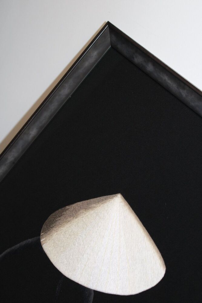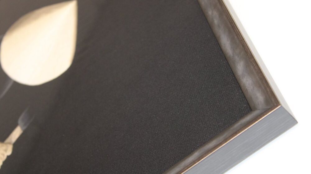 Our customer knew she wanted a black frame however, after we looked at various options together, decided to go for a moulding from our our Senza collection which, although black, also had various tones of dark grey in it that perfectly mirror the clothing in the picture.