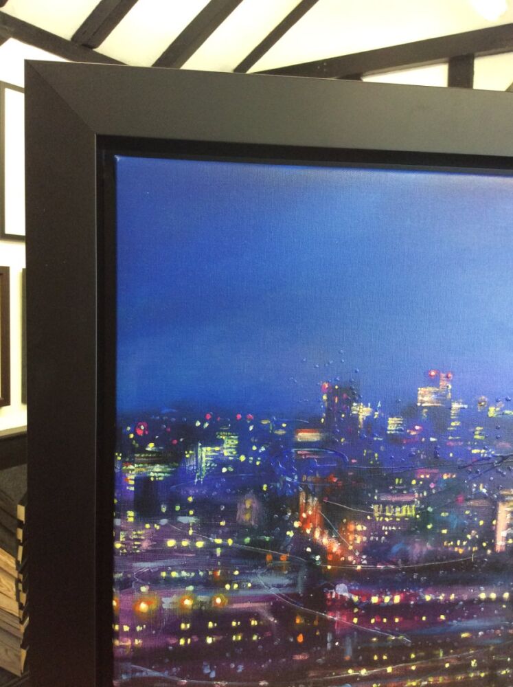 Entitled Bursting Into Life, the print depicts London's skyline at night, and our customer wanted a frame that was dark, dramatic and contemporary to fit with the subject matter.