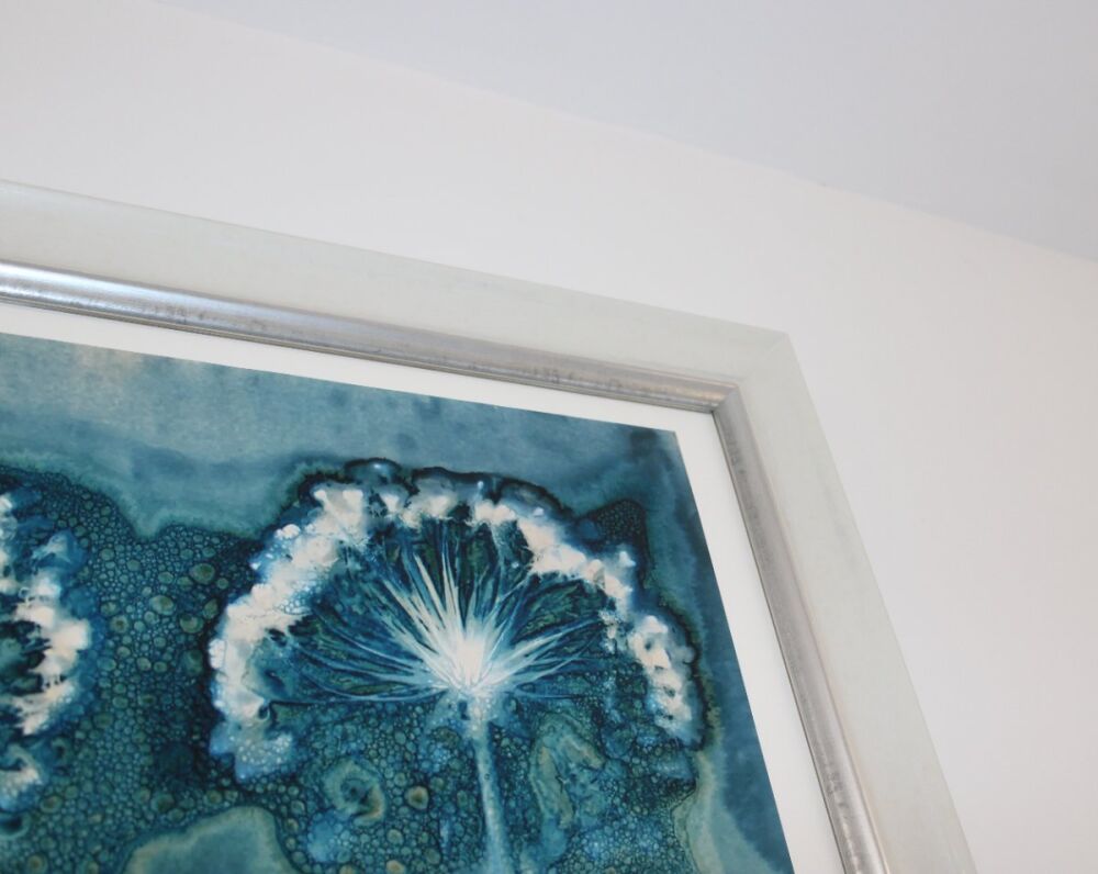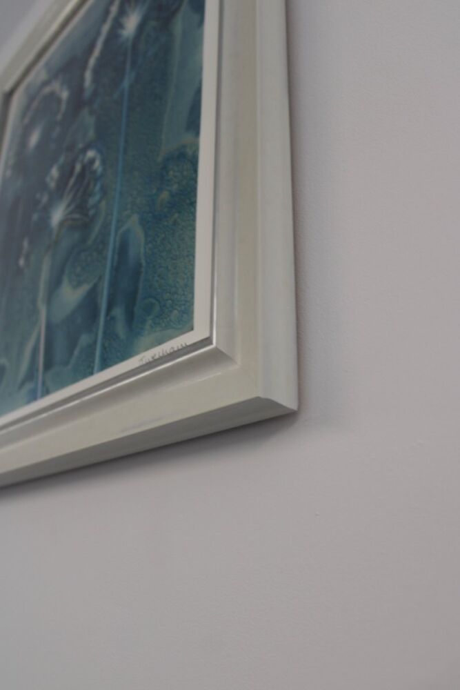 We framed it using a white painted dual profile moulding from our FSC® certified Provence collection - accented with metallic foil to highlight the colour of the flowers - and finished it with anti-reflective glass to virtually eliminate any reflection whilst filtering out 70% of UV.