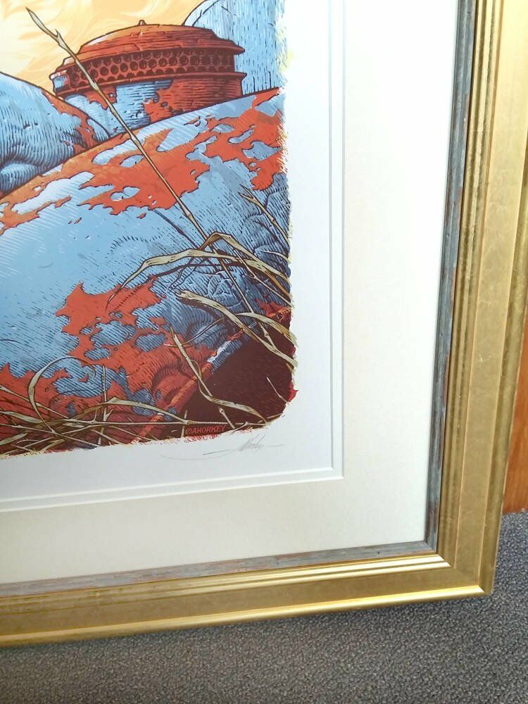 This limited edition silkscreen print - called Nesting - signed and numbered by U.S. illustrator, Aaron Horkey, was brought to us for framing in 2016.