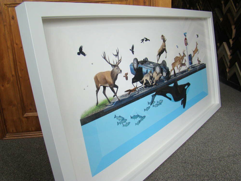 This limited edition print called Stampede by U.S. artist, Josh Keyes - known for his 'eco-surrealist' painting style - was brought to us for framing in 2017.