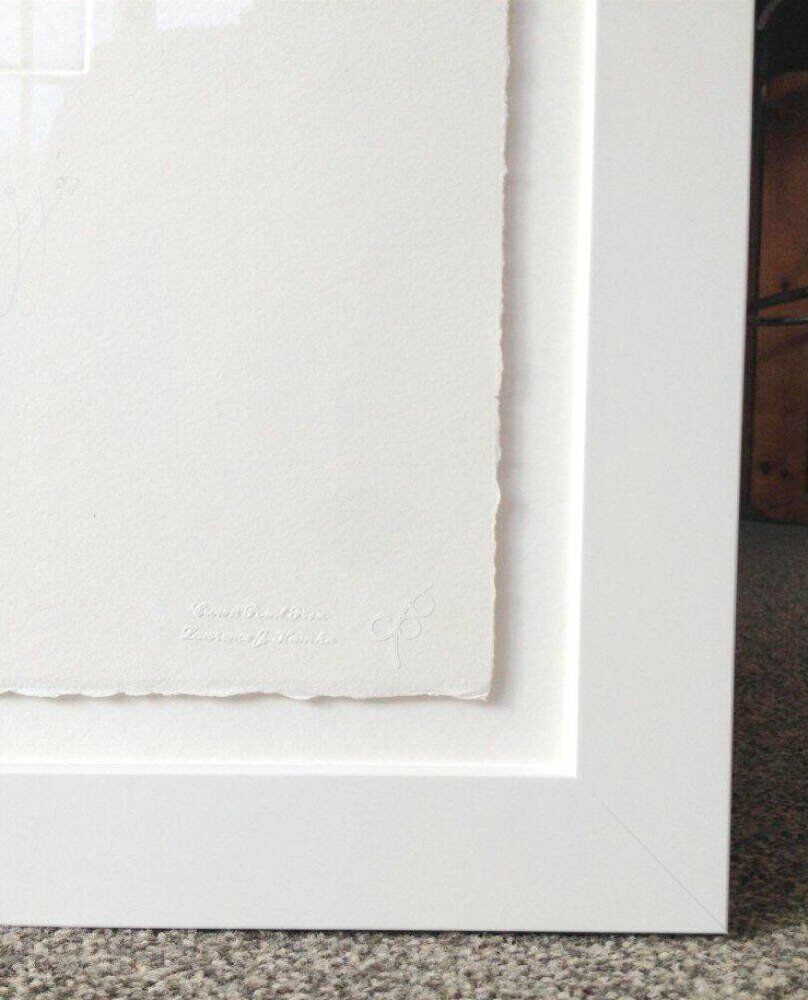 Firstly, we float mounted the artwork using hinging tape and undermount, both of which were conservation grade.