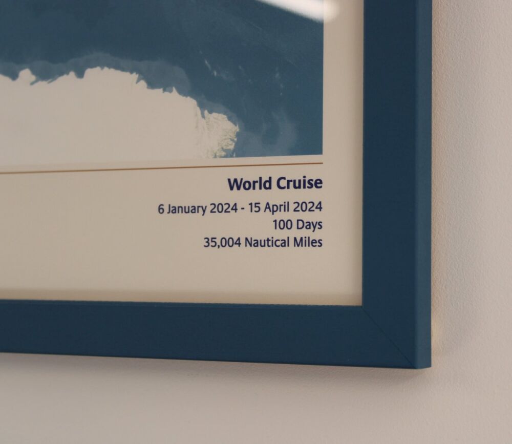 In the summer of 2025, a lady came to us for framing who'd been on a 100-day, round-the-world cruise the year before and brought back a world map as a memento.