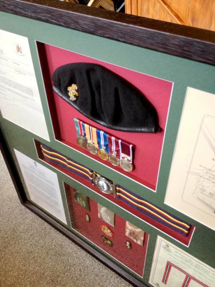 Strategically-placed spacers also create interesting depth to the display, with the certificates sitting at the front of the frame while the objects are set towards the back.