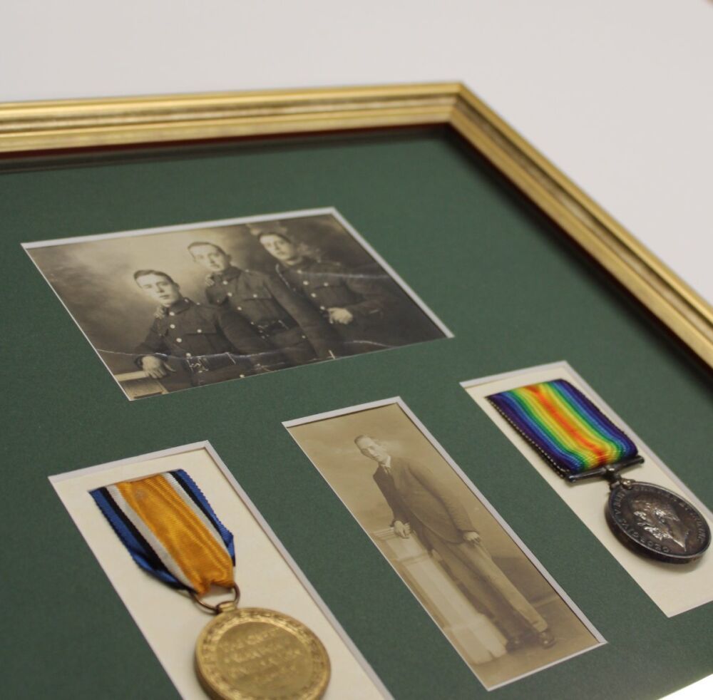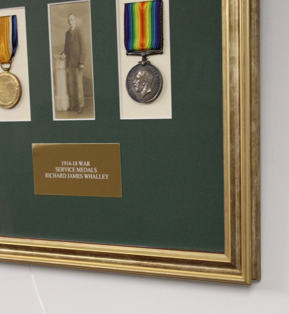 These WWI photos and medals - originally belonging to Richard James Whalley - were brought to us for framing in 2024 by his great grandson who had just inherited them.