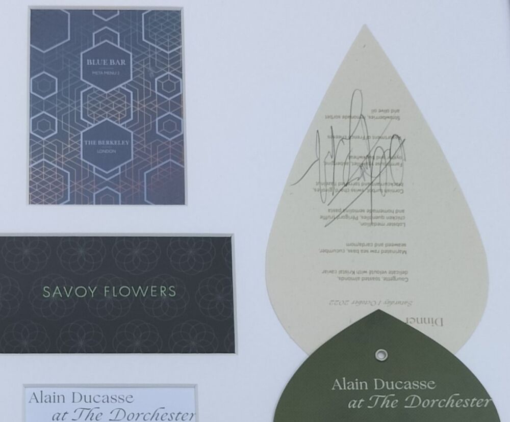 These distinctive menus, signed by celebrated Chef, Alain Ducasse, were brought to us for framing in 2023.