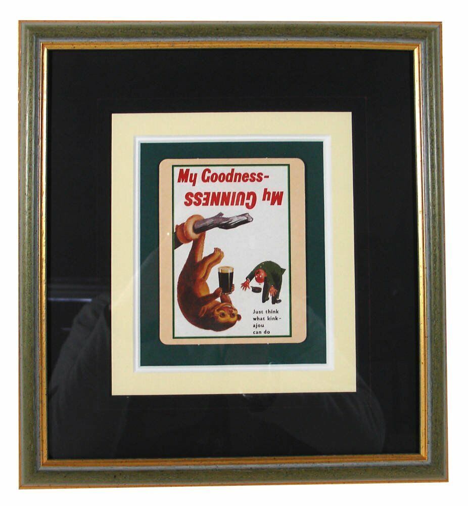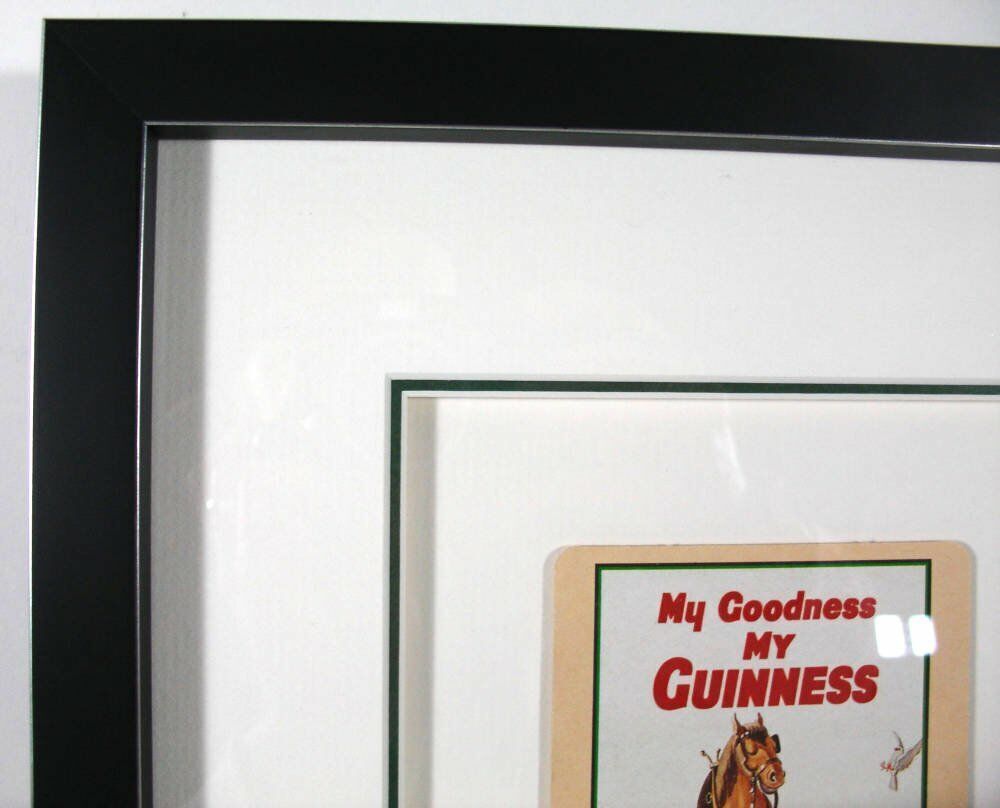 These two distinctive Guinness coasters were brought to us for framing in 2012, and show artwork from advertisements originally designed by John Gilroy in the 1930's.