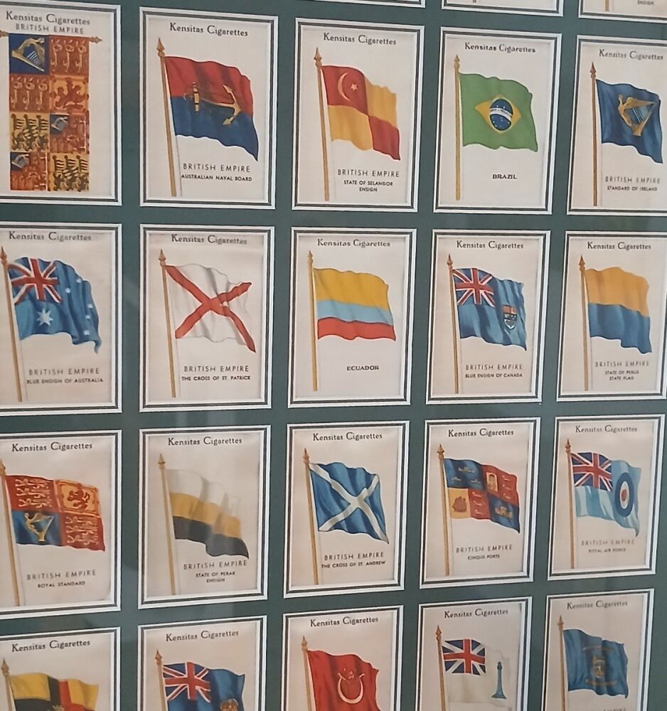 This interesting collection of Kensitas cigarette cards features various flags of the British Empire, and was brought to us to be framed in 2021.