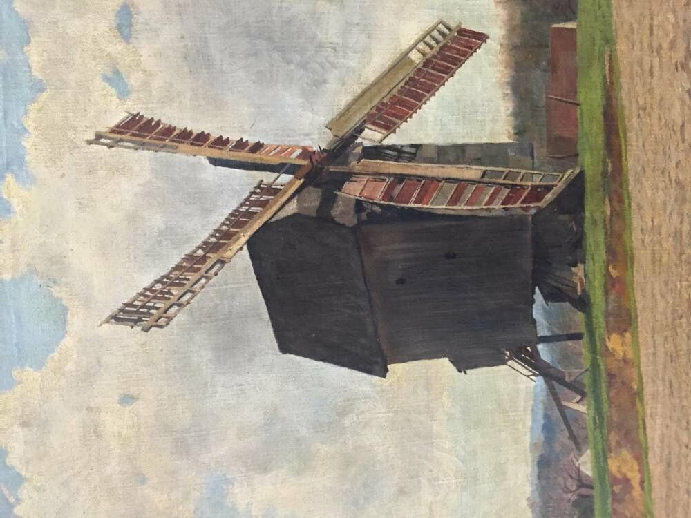 This beautiful antique oil painting of a windmill was brought into us by a collector, who wanted it framed traditionally.
