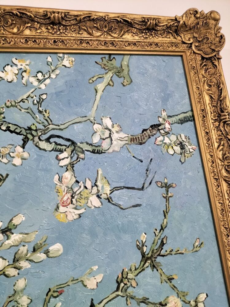 A reproduction oil on canvas of Van Gogh’s Almond Blossom, brought to us in 2023 to be stretched and framed.