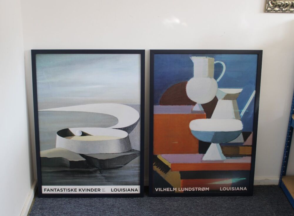 Here are two exhibition posters, brought into us for framing in 2023, by a couple who had just back from visiting Denmark’s incredible Louisiana Museum of Modern Art.