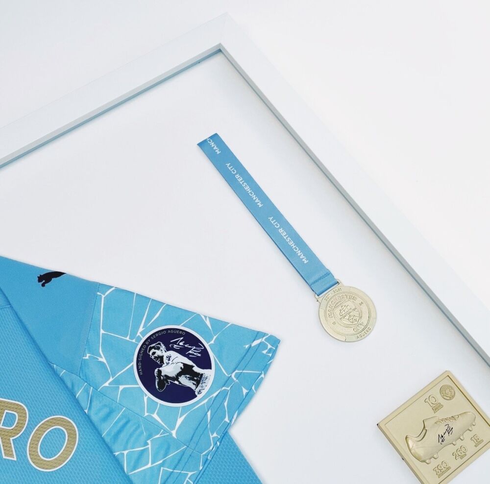 These Manchester City medals celebrating their all-time top goalscorer, Sergio Aguero's time at the Club, along with an autographed shirt, were brought to us for framing in 2022.