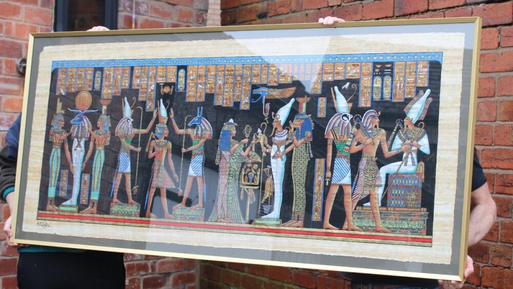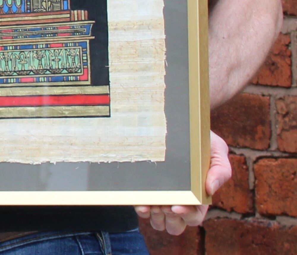 This large papyrus was brought into us in 2024 by a lady who'd picked it up on her travels to Egypt, and wanted a very thin frame for it.