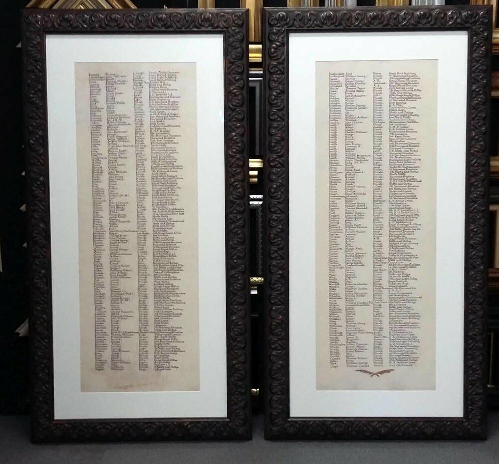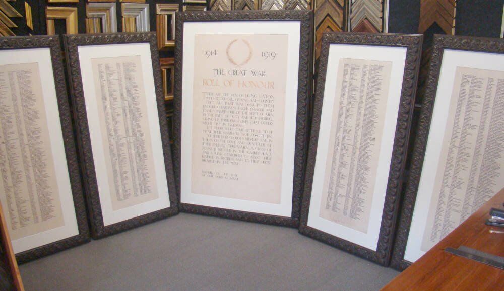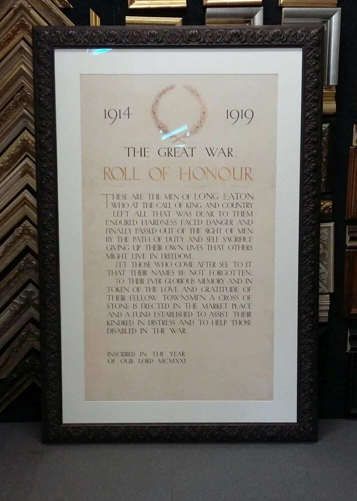 We were honoured to frame this Roll of Honour from The Great War as part of a memorial exhibition commissioned by Erewash Museum.